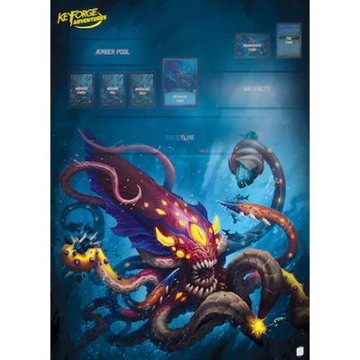 This premium playmat measures approximately 26" x 36" and is designed specifically for KeyForge Adventures: Rise of the Keyraken.