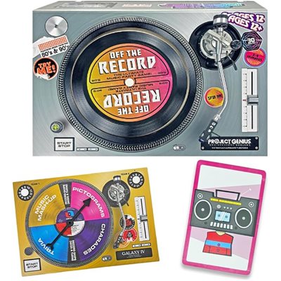 OFF THE RECORD - Préparez-vous à faire voyager vos soirées dans le temps avec le jeu ultime pour les fans de musique des années 80 et 90 ! Parfait pour la génération X, les Millennials, les 50 ans et tous ceux qui ont adoré ces décennies ! Ce jeu de société pour grands groupes vous emmène dans un voyage nostalgique dans le passé.