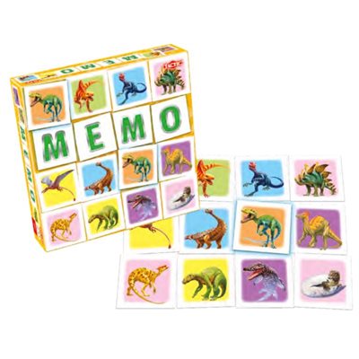 A matching game full of dino fun! Spread the tiles on the table and turn two of them at a time. If the pictures on the tiles match, you can collect them. The player, who collects the most pairs wins the game!