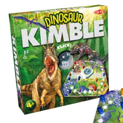 Get ready to race with dinos! Speed around the game board, moving all four of your pieces towards your finish spaces - but look out for the other players who will try to trip you up. Dinosaur Kimble is a classic family game with plenty of excitement! Comes with a durable plastic game board and a fun popping die.