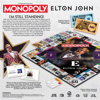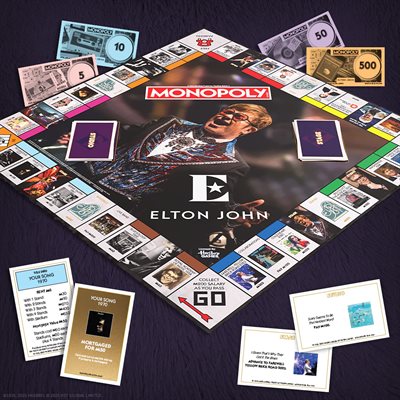 Célébrez l'histoire musicale de l'un des plus grands artistes de tous les temps avec MONOPOLY® : Édition Elton John. Achetez, vendez et échangez des moments mémorables de plus de cinquante ans de carrière d'Elton John, dont son étoile sur le Hollywood Walk of Fame (1975), son titre de Chevalier (1998) et sa tournée Farewell Yellow Brick Road (2023).