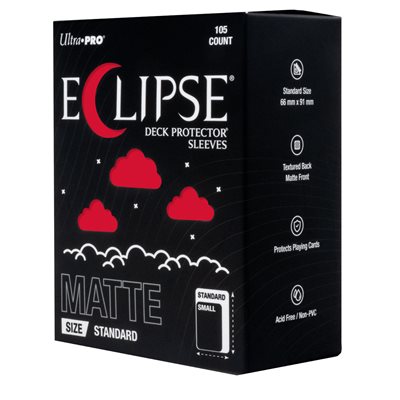 La prochaine évolution des légendaires pochettes ECLIPSE® DECK® PROTECTOR d’Ultra Pro est arrivée. Découvrez la texture améliorée, la sensation de mélange optimisée et la qualité rigoureusement testée et constante de la dernière formulation ECLIPSE®. Conçus pour le jeu compétitif et les collections d’archives, les pochettes ECLIPSE® DECK PROTECTOR® présentent des dos entièrement opaques et des joints résistants aux fissures. Les pochettes ECLIPSE® DECK PROTECTOR® sont disponibles en façades mates et brillantes, en formats standard et petit, et en 10 couleurs vives.