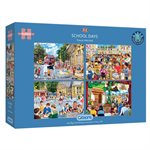 The first puzzle depicts walking to school and crossing the road with the help of the cheerful lollipop lady. Then we move inside the classroom where the milk monitor is handing out the milk bottles and children are sharing their artwork with the teacher. At break time the children are enjoying their favourite playground games with their friends. Finally, we get to witness the school play, where proud family and friends watch the children perform for the first time.
