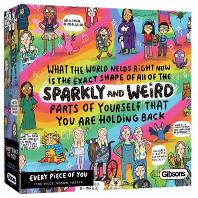 Every Piece of You is unique and important! Katie Abey has created this motivational 1000 piece puzzle, reminding us to celebrate the weird and wonderful pieces of ourselves in her usual fun and colourful style. The illustrations in this puzzle represent real people and their stories, you can find out more on the Gibsons Blog if you would like to learn about the inspirational people behind the puzzle.