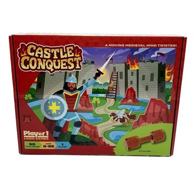 A Moving Medieval Mind Twister, Castle Conquest will train you to be the ultimate Knight of the Realm. To play, tip and turn the adjustable siege tower while navigating your way through swamps and around mountains to invade the enemy’s castle in as few moves as possible.