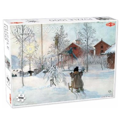 Immerse in a snowy tundra in "The Yard and Washhouse" a puzzle replica of the painting of the same name by Carl Larsson in 1985