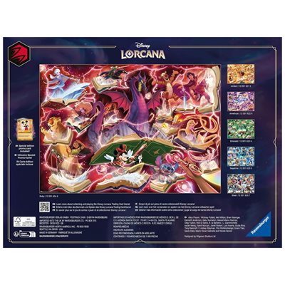 Pour les puzzleurs entraînés et les fans de Lorcana, le puzzle de 1000 pièces est idéal pour se plonger dans l'univers stratégique du jeu tout en profitant d'un moment de détente. Chaque pièce, unique en son genre, s'assemble parfaitement pour révéler une scène épique de Lorcana.