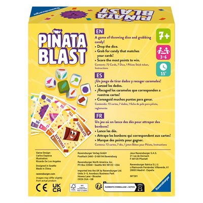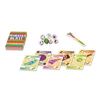 Découvrez la joie de courir pour des bonbons tombant d’une Piñata dans ce jeu de société rapide et amusant pour toute la famille. Lancez les dés, attrapez les dés qui correspondent à vos cartes avant vos adversaires, mais faites attention aux bonbons pourris. Gagnez le plus de points pour gagner la partie! Apprenez à jouer en 5 minutes, hit garanti pour une soirée ou une soirée de jeu que vous voudrez jouer encore et encore