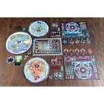 In addition to having a strong dose of controllability (the luck factor is minimal), the game features an innovative starred action-selection-system that confronts players with interesting choices: players can reincarnate their gods by performing their actions in a precise sequence, on pre-established paths of their starred player board, or they can give up some deities, jumping freely from one action to another of their board, to choose from time to time the situationally best actions.