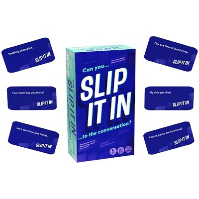 Faites parler tout le monde dans ce jeu de société qui transforme les bavardages ennuyeux en quêtes hilarantes pour insérer des phrases aléatoires dans vos conversations. Pouvez-vous vous faufiler « glissant quand il est mouillé » dans une discussion sur la météo ou intégrer du « Twinkie frit » dans une commande de restaurant sans vous faire prendre ? Glissez-le et découvrez-le dans ce jeu parfait pour les soirées entre amis, les dîners et les soirées de jeux !