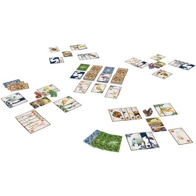 At the end of the game score: 1 point per card, counting only the longest uninterrupted sequence of numbers in each season. 2 points for every Wooden animal you own, and -2 points for every empty corner on the player card.
