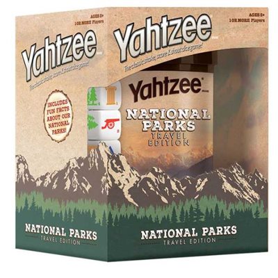 Pack up and explore the country’s greatest treasures with this national parks version of America’s #1 dice game! Encounter camping and wildlife-inspired symbols such as a tent, pine trees, deer, and more as you roll your way to a YAHTZEE with colorful dice and a barrel-themed cup. A portion of proceeds for the National Park Foundation make this travel-friendly activity a win-win for you and nature.