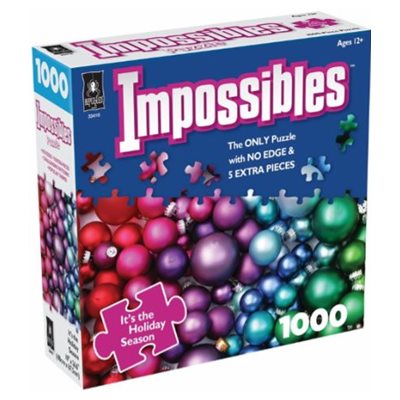 Push your puzzling experience to the edge with It's the Holiday Season, a borderless 1000-piece Impossibles Puzzle featuring a striking image of vibrant ornaments ranging in colors with amazing details. Say goodbye to straight edges as you navigate through a maze of intricate lines and vibrant colors, with each piece adding a layer of complexity.