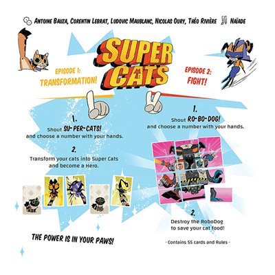 Act as cute kittens and band together to become the fierce Super Cat, the only one who can defeat mangy enemy RoboDog! This fun game brings the strategy of rock-paper-scissors to a multi-player card game.