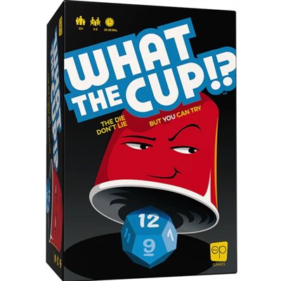 What The Cup!? is a game of luck and lies where you must do whatever it takes to end up with highest or lowest valued die. Sabotage your opponents by changing the winning target, or follow card directives to spy, swap, re-roll, or reveal dice. Bet your chips to raise the stakes and bluff your way to victory. Does your cup hold the winner? The die don’t lie... but YOU can try!