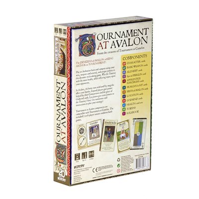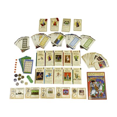 You play as a legendary character, battling opponents with weapon cards—Arrows, Swords, Deception, Sorcery, and even Alchemy. The more you injure your opponents, the better you fare in the tournament. However, even the most injured characters can make a complete comeback with the grace of Godsend cards and the aid of their special Companions. This trick-taking game ends when one opponent has been injured to the point of death. The player with the most health is then declared the Tournament victor!