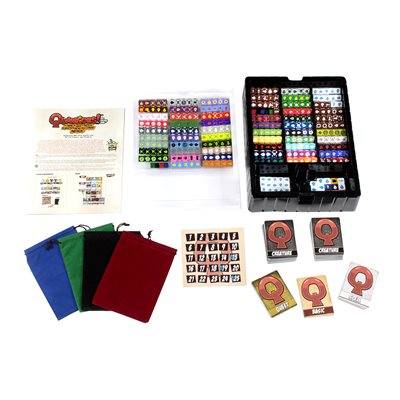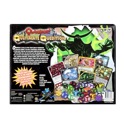 Quarriors! is (still!) a fast-paced game of hexahedron monster combat where you must strategically balance your options each turn to earn more glory than your opponent (and this Qultimate Quedition maximizes your options)! Will you play with the original game, or will you mix in the expansions for more quarrelsome quarry? Roll dice, summon creatures, capture Quarry, avoid the devastating corruption, go on quizzical quests, fight for the forces of light or dark, outmaneuver your opponents, become the champion of Quaridia, and gain the attention of Empress Quiana today with Quarriors! Qultimate Quedition!