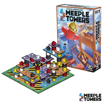 Meeple Towers is a strategic and abstract tower building game. Players take turns playing action cards that let you add workers, supports, or new tiles to create a growing multi-level 3D structure. You score points based on your contributions, your supporting structures, and how good you make life for your meeples. The builder with the most points wins!