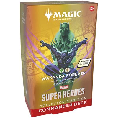 Les decks Commander sont prêts à l'emploi dès leur sortie de la boîte et contiennent tout ce dont vous avez besoin pour jouer au format multijoueur le plus populaire de Magic. Magic: The Gathering | Marvel Super Heroes Commander Decks Collector's Edition propose quatre versions différentes de decks Commander, chacune comprenant 100 cartes foil Surge.