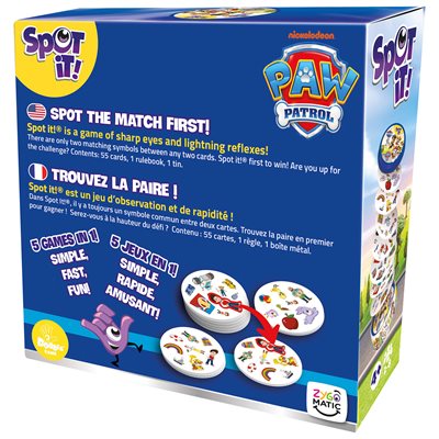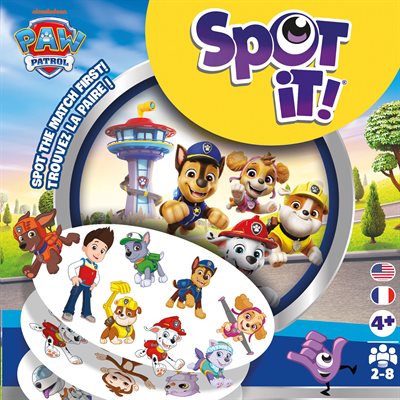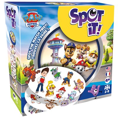 Cette édition Pat Patrouille de Spot it! met en vedette des personnages et symboles emblématiques de la populaire émission télévisée.